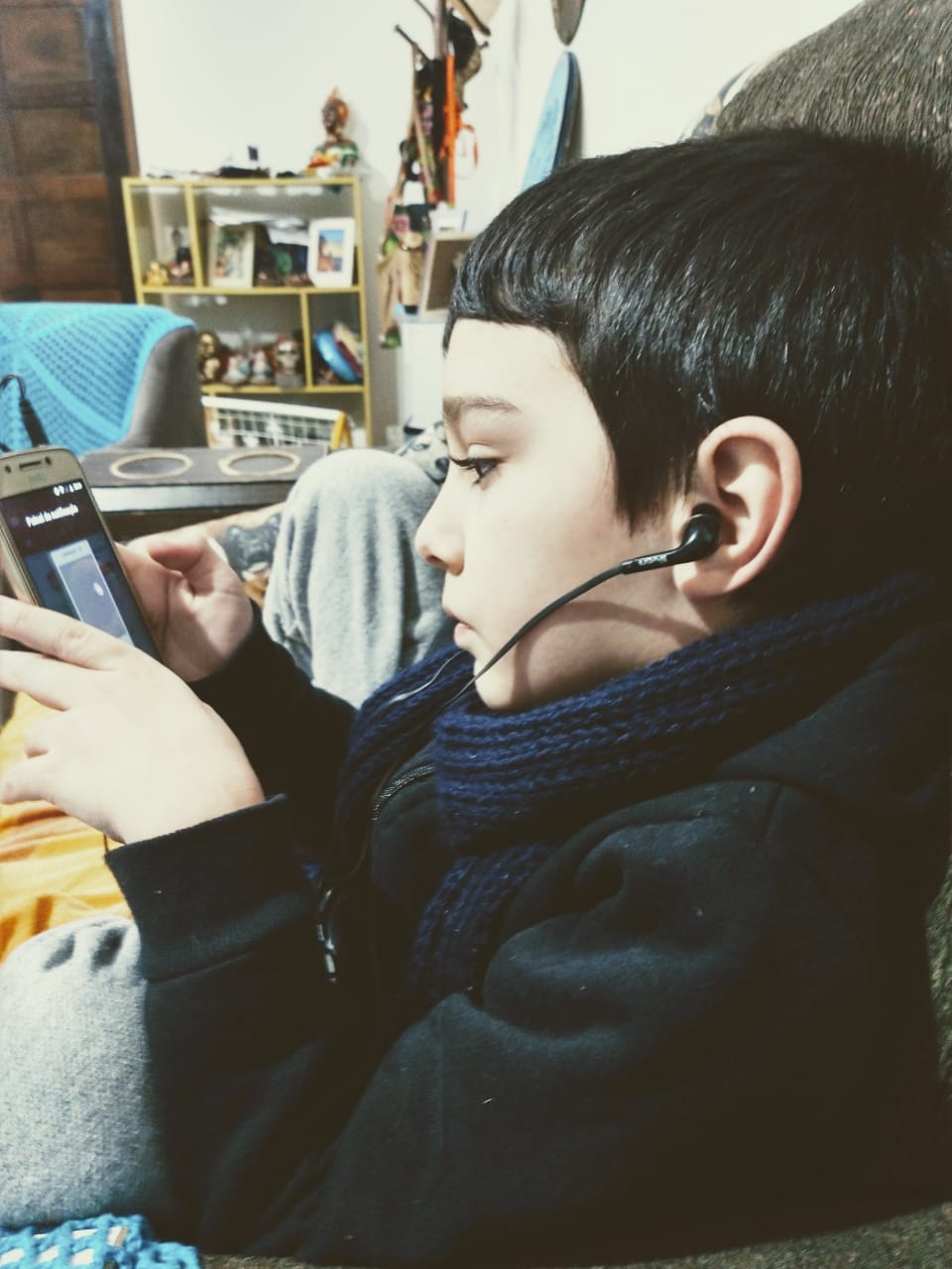 Ele fica tendo vídeo aula durante 4h, com intervalo de 30 min de recreio, em casa. Não foi fácil o Davi ficar sentado olhando para a tela, muito difícil, sempre se levantando, não é fácil se concentrar. O Davi prefere as aulas presenciais, mas a escola e os pais preferem que sigam esse tipo de aulas até o final do ano…”.