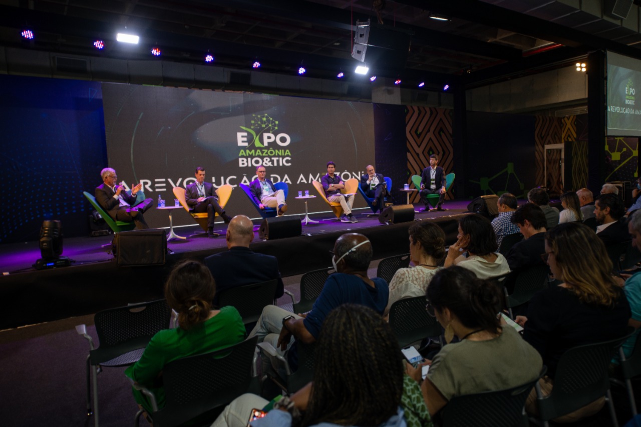 A programação de palestras e debates do palco principal da ExpoAmazônia Bio&TIC 2022 começou na última quinta-feira (30), após a cerimônia de abertura do evento. A primeira apresentação juntou, nada mais, nada menos, que dirigentes de cinco instituições de investimentos internacionais, que se juntaram ao presidente do BNDES (Banco Nacional do Desenvolvimento Econômico e Social), Gustavo Montezano, que além de participar ativamente, também mediou as conversas.