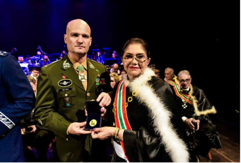 O Comandante Militar do Norte, Gen Ex Luciano Guilherme Cabral Pinheiro, foi uma das 97 personalidades agraciadas com a Medalha Comemorativa pelos 150 anos de instalação do Tribunal de Justiça do Estado do Pará. A outorga foi realizada durante a sessão solene no último sábado (3), Theatro da Paz, em Belém. Na ocasião, o Comandante foi representado pelo Chefe do Centro de Coordenação de Operações do CMN, Gen Bda Júlio Cesar Belaguarda Nagy de Oliveira.