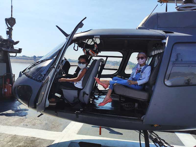 Emocionada, Patricia Chaves Ricardo, mãe de Fernanda, falou da felicidade em ver o desejo da filha realizado. “Ela tem esse sonho de viajar no navio da Marinha desde sempre e ficou muito feliz. Foi uma emoção muito grande para nós. Sou grata a todos os militares, porque fomos muito bem recebidas. Ela estar lá, sentar na cadeira do Comandante e ser recebida pelos militares aumentou sua autoestima”, disse.