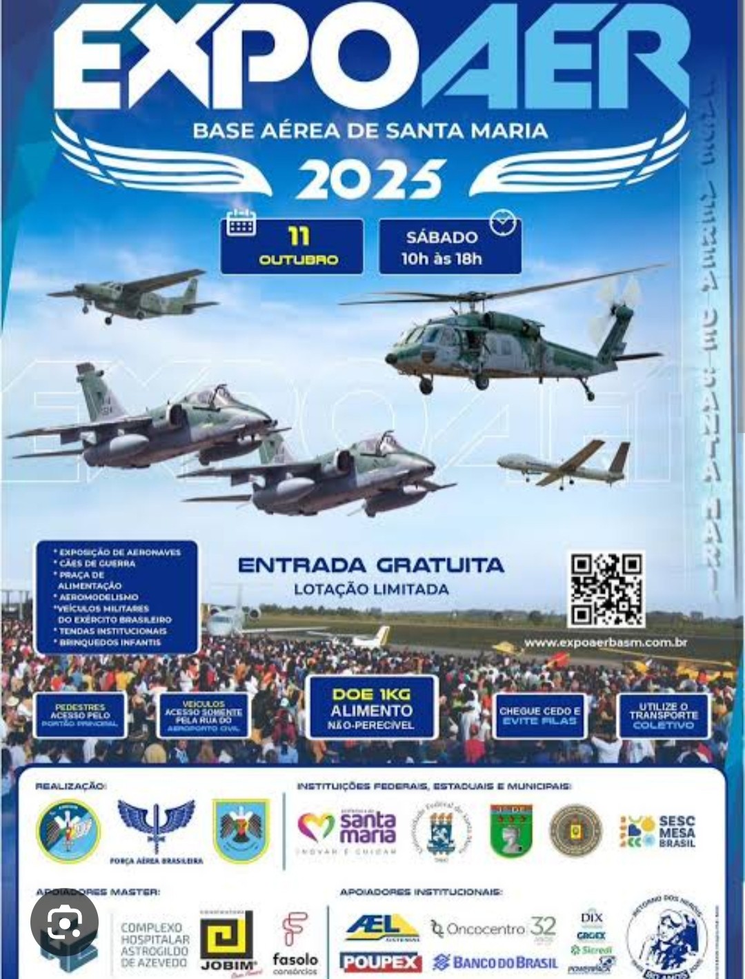 No dia 11 de outubro acontece a EXPOAER 2025, evento da Base Aérea, na qual abrirá seus portões à comunidade para a realização desse evento, que faz parte do calendário da cidade.