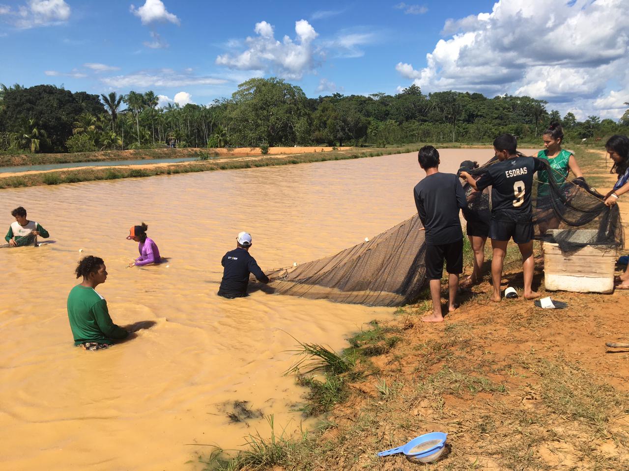 O curso ocorreu de forma teórica e prática sobre os conhecimentos de análise e qualidade da água, despesca e replicagem na criação de tambaqui, biometria, manejo e distribuição de alevinos, manejo e limpeza de tanques na piscicultura.