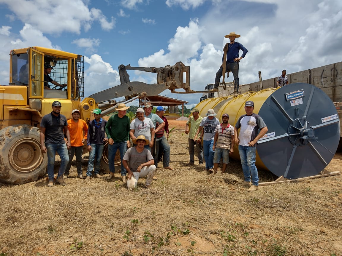 Nesta primeira etapa, foi entregue um secador rotativo com capacidade de 15 metros cúbicos que auxiliará na secagem do grão.