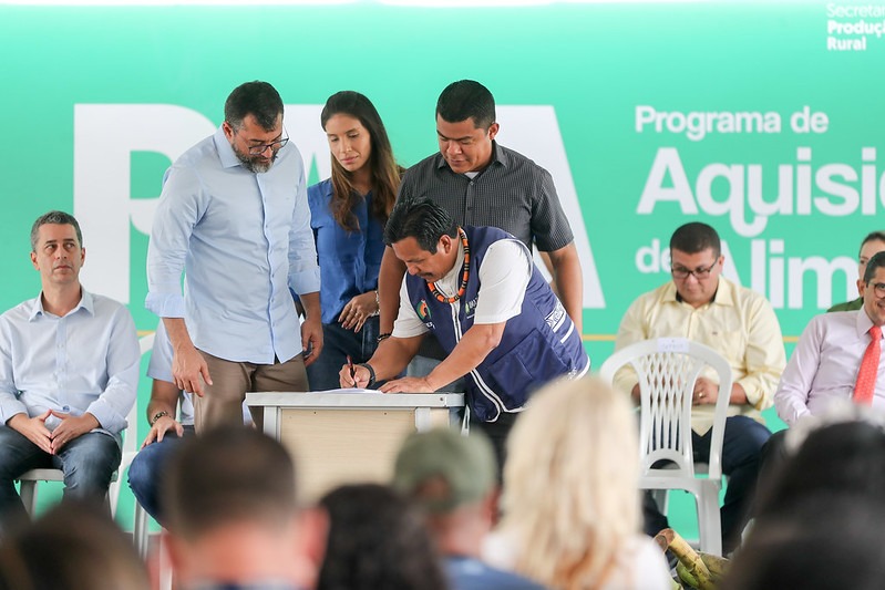 O Governo do Amazonas, lançou na quarta-feira (20/12), de forma inédita, Chamada Pública do Edital do PAA Indígena voltado aos povos originários e comunidades tradicionais do Amazonas. O evento aconteceu no estacionamento da Secretaria de Estado da Produção Rural (Sepror), no bairro Japiim, zona sul de Manaus, com a presença do governador Wilson Lima, os gestores da Sepror e o presidente da Fundação Estadual dos Povos Indígenas do Amazonas (Fepiam), Daniel Borges e Sinésio Trovão Campos.