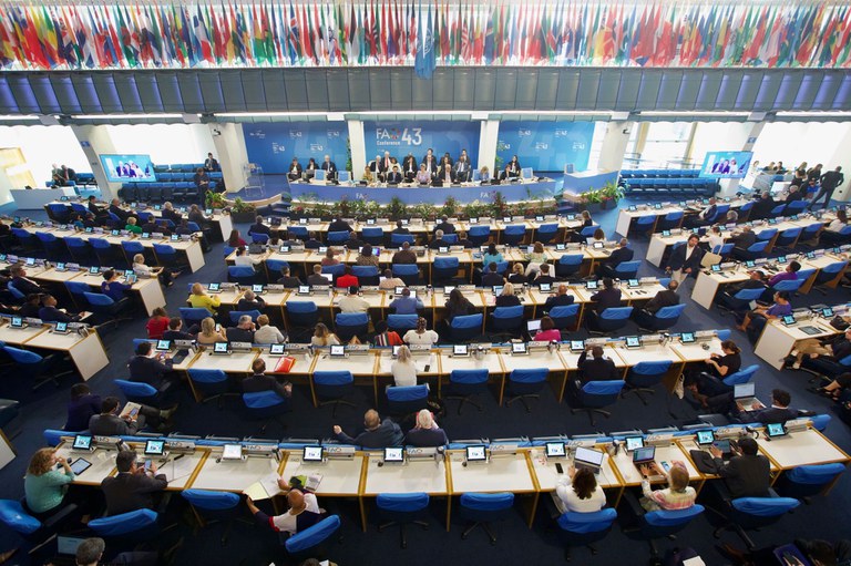 O Ministério da Agricultura e Pecuária (Mapa) participou de debates na 43ª Conferência da Organização das Nações Unidas para Alimentação e Agricultura (Food and Agriculture Organization – FAO), em Roma, entre os dias 3 e 7 deste mês. O evento bienal reuniu 120 ministros e demais autoridades dos 194 países membros da organização para articular ações e políticas públicas de combate à escassez de água, promover a segurança alimentar e nutricional e apoiar o desenvolvimento rural e agrícola sustentável.