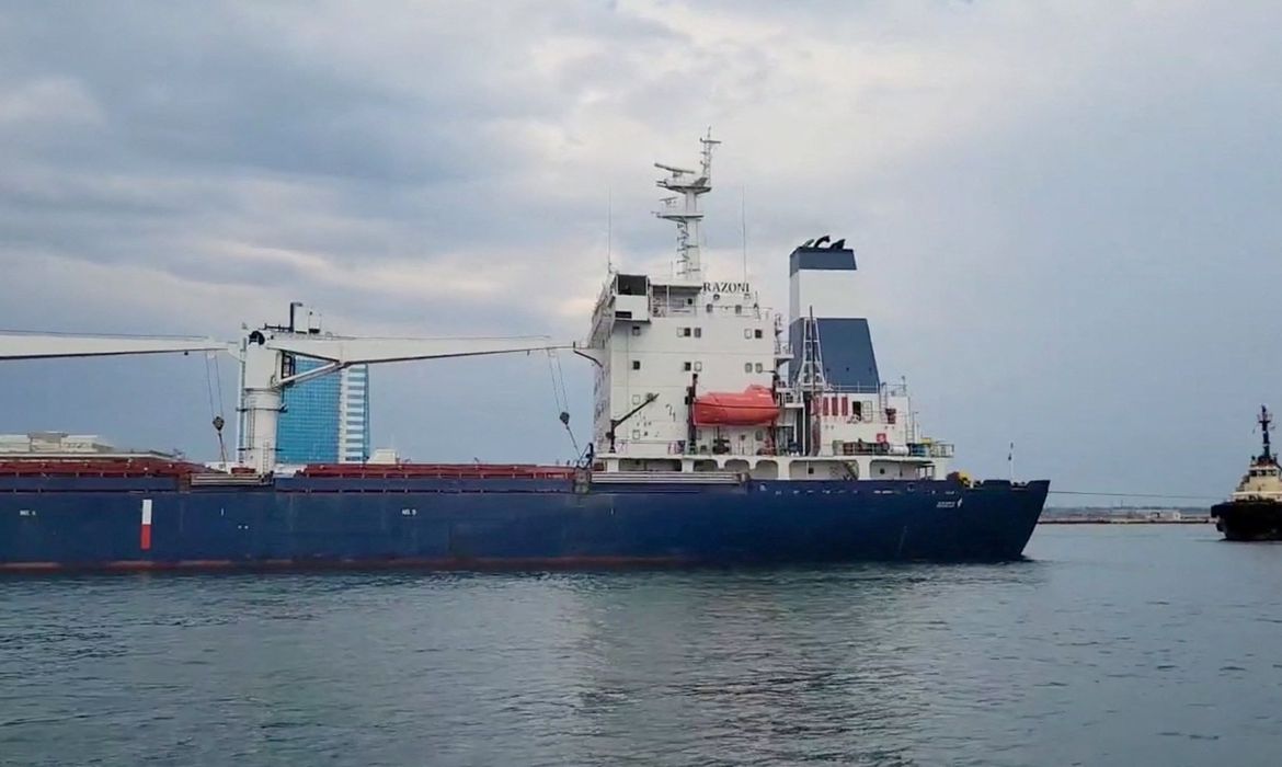 “O primeiro navio de grãos desde a #AgressãoRussa deixou o porto. Graças ao apoio de todos os nossos países parceiros e da ONU [Organização das Nações Unidas], conseguimos implementar plenamente o acordo assinado em Istambul”, escreveu o ministro no Twitter.
