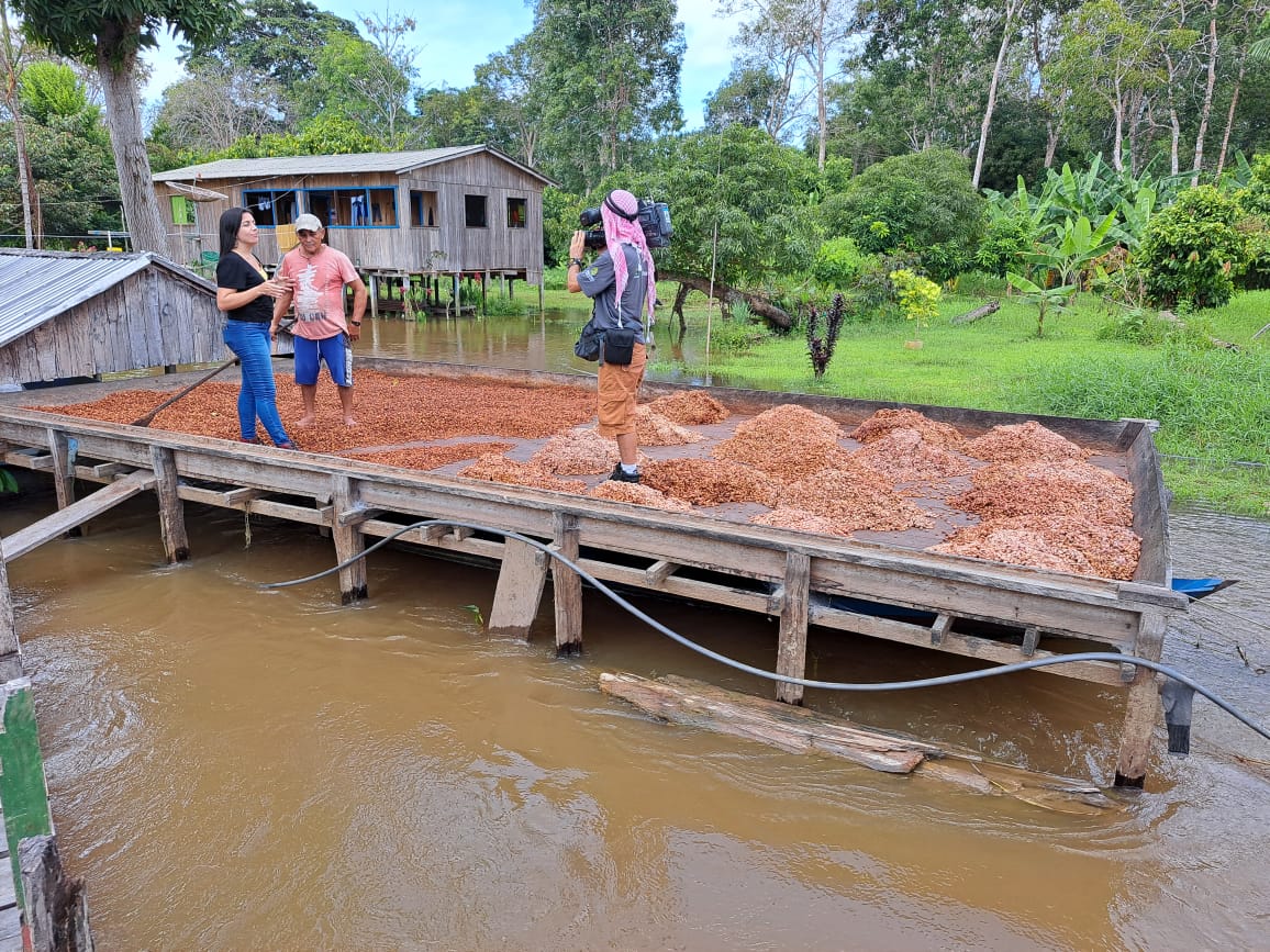 Foram três dias de filmagens visitando produtores e acompanhando os processos desde a colheita até o ensacamento e também o melhoramento das amêndoas e derivados. O programa vai mostrar também como ações de incentivo à produção, por meio do Instituto Agropecuário Florestal do Amazonas (Idam) do governo do Estado, tem impulsionado os produtores por meio de acompanhamentos técnicos, distribuição de sementes, construção de viveiros, e realização de cursos de capacitação.