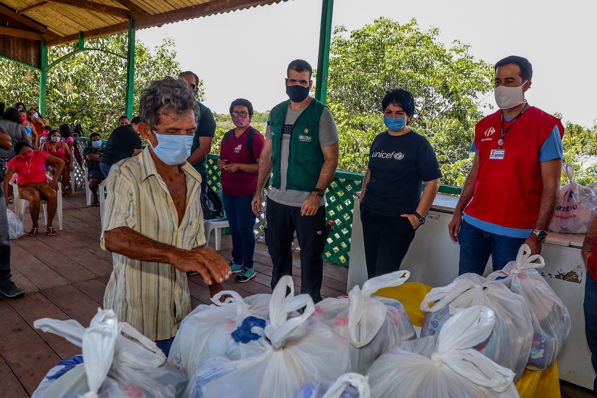 O material foi doado ao Governo do Amazonas pelo grupo Carrefour Manaus, em articulação com o Unicef (Fundo das Nações Unidas para a Infância). Ao todo, 22 mil itens, entre álcool em gel, detergentes, sabonetes e máscaras de proteção, foram entregues para dar suporte ao Programa Emergencial de Combate à Covid-19 em Unidades de Conservação.