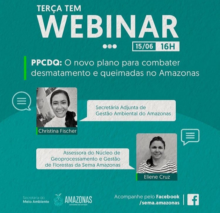 Nesta terça-feira (16), às 16h, a Sema (Secretaria do Meio Ambiente) promoverá um Webinar que esclarecerá as principais metas e etapas do Plano de Prevenção e Controle do Desmatamentos e Queimadas no Amazonas, que foi assinado na semana do meio ambiente, pelo Governador do Estado, Wilson Lima.