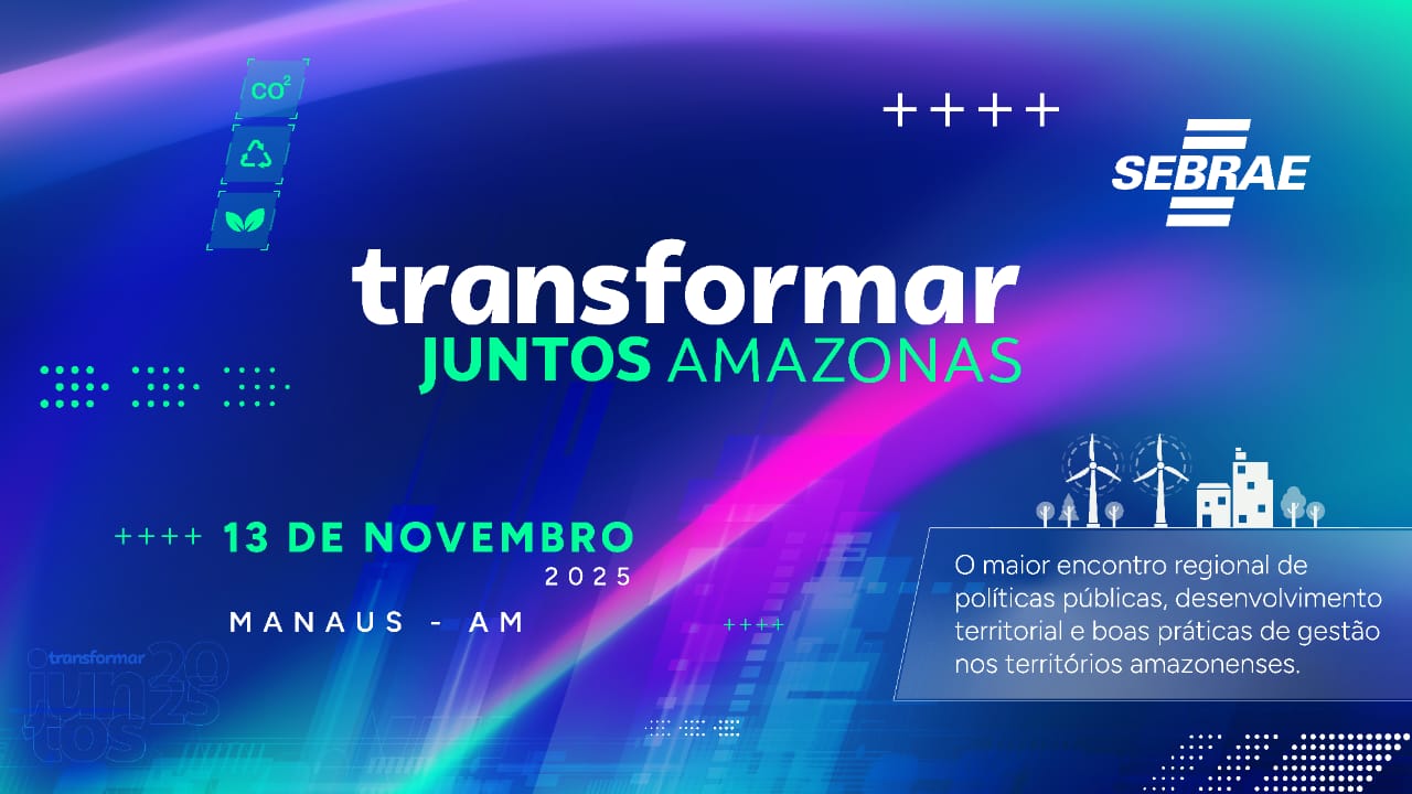 Estão abertas as inscrições para a 1ª edição do Transformar Juntos Amazonas, evento promovido pelo Sebrae que será realizado no dia 13 de novembro, de 8h às 18h, em Manaus, no Sesi Clube do Trabalhador (Av. Cosme Ferreira, 7399 – São José I). A iniciativa tem como objetivo promover o debate e a troca de experiências sobre políticas públicas voltadas ao desenvolvimento dos municípios e territórios. As inscrições podem ser feitas no link https://forms.office.com/r/rFRe1TQmTF?origin=lprLink.